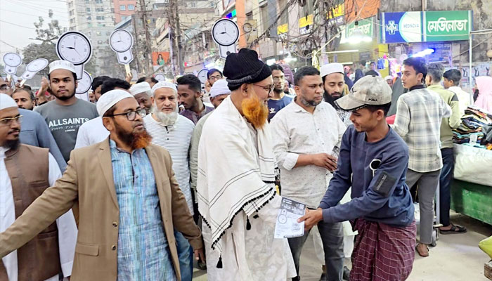 আসন্ন ত্রয়োদশ জাতীয় সংসদ নির্বাচনে নারায়ণগঞ্জ-৫ আসনে খেলাফত মজলিসের এবং জামায়াত-এনসিপিসহ ১০ দল সমর্থিত ‘দেওয়াল ঘড়ি’ মার্কার প্রার্থী এবিএম সিরাজুল মামুন ব্যাপক গণসংযোগ ও নির্বাচনি প্রচারণা চালিয়েছেন। বৃহস্পতিবার (২৯ জানুয়ারি) বিকেলে তিনি নাসিক ১১ ও ১৩ নং ওয়ার্ডের বিভিন্ন এলাকায় ভোটারদের দ্বারে দ্বারে যান এবং দোয়া ও ভোট প্রার্থনা করেন। এই প্রচারণাটি আদর্শ স্কুলের সামনে থেকে শুরু হয়ে মাসদাইর বাজার, বোয়ালিয়াখাল, গলাচিপা রেললাইন, প্রেস ক্লাব এলাকা এবং পুরাতন কোর্ট হয়ে কালিরবাজার চারারগোপ পর্যন্ত বিস্তৃত হয়। এ সময় দেওয়াল ঘড়ি মার্কার সমর্থনে নেতা-কর্মীদের মিছিলে অলিগলি মুখরিত হয়ে ওঠে।