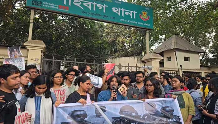 ঢাবি শিক্ষার্থীর ওপর পুলিশি হামলার প্রতিবাদে শাহবাগ থানা ঘেরাও