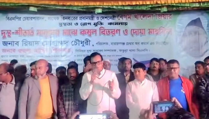 শীতার্তদের পাশে দাঁড়ানোর গুরুত্ব তুলে ধরে রিয়াদ চৌধুরী আরও বলেন, “অসহায় মানুষের পাশে দাঁড়ানো আমাদের নৈতিক ও মানবিক দায়িত্ব। স্বেচ্ছাসেবক দল সবসময় সাধারণ মানুষের দুঃখ-কষ্টে পাশে থেকেছে এবং ভবিষ্যতেও এই ধরনের সামাজিক ও মানবিক কার্যক্রম অব্যাহত থাকবে।” আসন্ন নির্বাচন প্রসঙ্গে তিনি নেতাকর্মীদের উদ্দেশ্যে বলেন, “আগামী জাতীয় সংসদ নির্বাচনে বিএনপি যাকে মনোনয়ন প্রদান করবে, আপনারা ঐক্যবদ্ধভাবে তাঁর পক্ষেই কাজ করবেন। আপনাদের একটি মূল্যবান ভোট ও সঠিক সিদ্ধান্তই আগামীতে একটি সুশৃঙ্খল ও সমৃদ্ধ বাংলাদেশ গড়তে ভূমিকা রাখবে।”