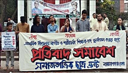 এই আত্মঘাতি সিদ্ধান্তের প্রতিবাদে শুক্রবার (১৪ নভেম্বর) বিকেলে নারায়ণগঞ্জের চাষাড়া শহিদ মিনারের পাদদেশে প্রতিবাদী সমাবেশ করেছে সমাজতান্ত্রিক ছাত্র ফ্রন্ট, নারায়ণগঞ্জ জেলা শাখা। সংগঠনের নেতারা অভিযোগ করেছেন, সরকার ধর্মীয় সাম্প্রদায়িক গোষ্ঠীর চাপে নতিস্বীকার করে ভবিষ্যৎ প্রজন্মের মানবিক বিকাশের পথ রুদ্ধ করছে।