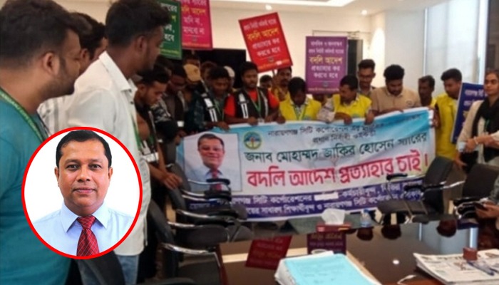 নারায়ণগঞ্জ সিটি কর্পোরেশনের (নাসিক) প্রধান নির্বাহী কর্মকর্তা (সিইও) মোঃ জাকির হোসেন একজন মানবিক কর্মকর্তা হিসেবে কর্মীদের কাছে কতটা প্রিয়, তা আজ মঙ্গলবার (১১ নভেম্বর) দুপুরে স্পষ্ট হয়ে গেল। তাঁর বদলির আদেশ প্রত্যাহারের দাবিতে সিটি কর্পোরেশনের যানজট নিরসনে দায়িত্বে থাকা কয়েকশো কর্মী নারায়ণগঞ্জ প্রেসক্লাবের সামনে এসে আন্দোলনে নামেন।