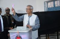 ঢাকার গুলশান মডেল হাইস্কুল অ্যান্ড কলেজ কেন্দ্রে ভোট দিয়েছেন অন্তর্বর্তী সরকারের প্রধান উপদেষ্টা অধ্যাপক মুহাম্মদ ইউনূস। ভোট দেওয়ার পরে সাংবাদিকদের তিনি বলেন, ‘আজ থেকে আমরা প্রতিটি পদে নতুন বাংলাদেশ সৃষ্টি করার সুযোগ পেলাম। আজকে জন্মদিন পালন করি আমরা দিনব্যাপী। সবাই উৎসব করি এবং নিশ্চিতভাবে গণভোট দেবেন। প্রার্থীদের ভোট গুরুত্বপূর্ণ। গণভোট কিন্তু খুবই গুরুত্বপূর্ণ। সবাইকে আহ্বান জানাচ্ছি গণভোটে অংশ নেওয়ার জন্য, যাতে নতুন বাংলাদেশ গড়তে পারি। আজ বাংলাদেশের সবার জন্য আনন্দের দিন। মুক্তির দিন। আমাদের দুঃস্বপ্নের অবসান, নতুন স্বপ্নের শুরু। সবাইকে মোবারকবাদ জানাচ্ছি। ঈদ মোবারক।