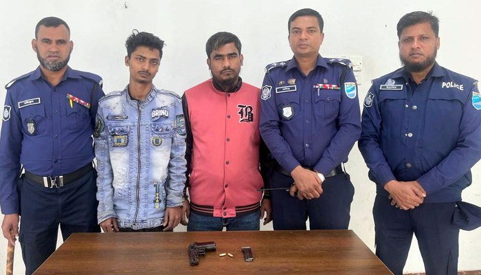 গ্রেপ্তারকৃতরা হলেন—বন্দর থানাধীন মদনগঞ্জ ১৯নং ওয়ার্ডের শান্তিনগর এলাকার জাকির হোসেনের ছেলে মো. লিজান (২০) এবং তাওলাদ হোসেনের ছেলে মো. টিটু (৪০)। তাঁদের দেহ তল্লাশি করে ম্যাগাজিনসহ একটি পুরাতন বিদেশী পিস্তল এবং ২ রাউন্ড তাজা গুলি উদ্ধার করা হয়।