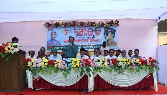 ঐতিহাসিক ৭ নভেম্বর 'জাতীয় বিপ্লব ও সংহতি দিবস'-এর তাৎপর্য তুলে ধরে এবং আসন্ন নির্বাচনে দলীয় প্রার্থীর পক্ষে নির্বাচনী ঐক্য জোরদার করতে এক গুরুত্বপূর্ণ আলোচনা সভার আয়োজন করে বাংলাদেশ জাতীয়তাবাদী দল (বিএনপি) নারায়ণগঞ্জ মহানগর। রবিবার (৯ নভেম্বর) বিকেলে ১২ নং ওয়ার্ডের ডন চেম্বার এলাকায় অনুষ্ঠিত এই সভা থেকে মাসুদুজ্জামান মাসুদকে বিপুল ভোটে জয়ী করার সম্মিলিত অঙ্গীকার ব্যক্ত করা হয়।