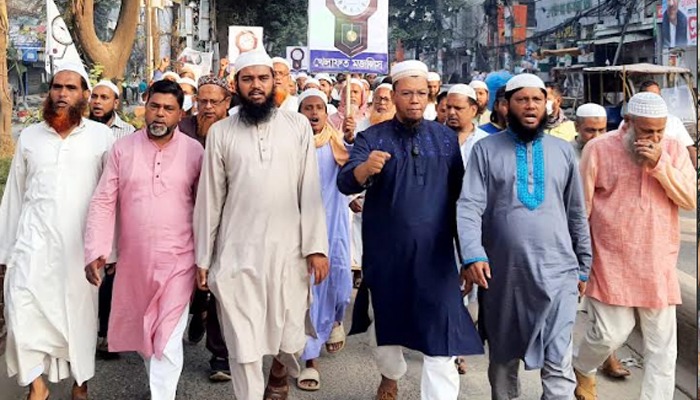 অগ্নিসন্ত্রাস ও নৈরাজ্যের প্রতিবাদে ফজরের পরপরই রাজপথে খেলাফত মজলিস