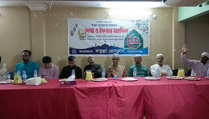 পবিত্র মাহে রমজান উপলক্ষে ফতুল্লা প্রেস ক্লাবের উদ্যোগে এক ইফতার ও দোয়া মাহফিল অনুষ্ঠিত হয়েছে। রোববার (১ মার্চ) সন্ধ্যায় ফতুল্লা থানা গেট সংলগ্ন শাহফতেউল্লাহ কনভেনশন সেন্টারে এই আয়োজন করা হয়।