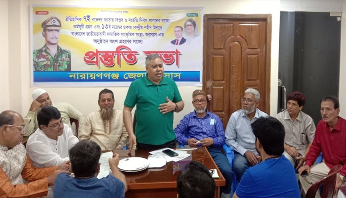 নারায়ণগঞ্জ জেলা জাসাসের সিনিয়র সহ-সভাপতি ডা. এম এ লতিফ তুষারের সভাপতিত্বে এই সভা অনুষ্ঠিত হয়। সঞ্চালকের দায়িত্ব পালন করেন জেলা জাসাসের সিনিয়র যুগ্ম সম্পাদক আলমগীর হোসেন রানা।