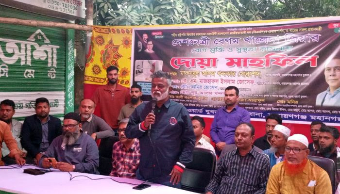 সভায় প্রধান অতিথির বক্তব্যে নারায়ণগঞ্জ মহানগর যুবদলের সাবেক সভাপতি মাকছুদুল আলম খন্দকার খোরশেদ বলেন, "একটি বিশেষ উদ্দেশ্য নিয়েই আজ এখানে এসেছি। গণতন্ত্রের মা, আপসহীন নেত্রী বেগম খালেদা জিয়া অসুস্থ। তাঁর রোগমুক্তি ও দীর্ঘায়ু কামনায় দোয়া করতে এখানে সমবেত হয়েছি। বেগম খালেদা জিয়া শুধু বিএনপির নেত্রী নন, তিনি এ দেশের নেত্রী।" তিনি আরও বলেন, "আওয়ামী লীগ সারা দেশে যে লুটপাট চালিয়েছে, বিএনপি ক্ষমতায় গেলে তা করবে না। এটি দেশনেত্রী বেগম খালেদা জিয়া ও তারেক রহমানের অঙ্গীকার।" তিনি সকলকে বেগম খালেদা জিয়ার জন্য দোয়া করার আহ্বান জানান এবং তারেক রহমান যাকে মনোনয়ন দিয়েছেন, তাঁর পক্ষেই কাজ করার প্রত্যয় ব্যক্ত করেন।
