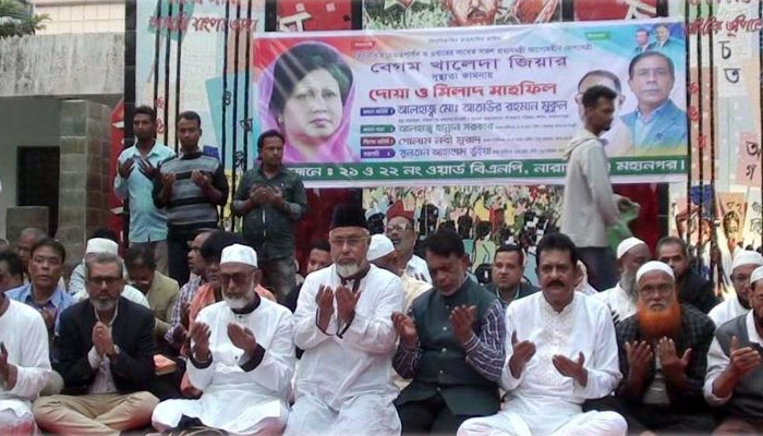 নিউজ ভিউ, নারায়ণগঞ্জ: সাবেক প্রধানমন্ত্রী ও বিএনপি চেয়ারপারসন বেগম খালেদা জিয়ার দ্রুত রোগমুক্তি ও দীর্ঘায়ু কামনায় নারায়ণগঞ্জ সিটি কর্পোরেশনের ২১ ও ২২নং ওয়ার্ড বিএনপির উদ্যোগে মিলাদ ও দোয়া মাহফিল অনুষ্ঠিত হয়েছে। নেত্রীর সুস্থতার পাশাপাশি দেশে গণতন্ত্র পুনরুদ্ধারের প্রত্যাশা নিয়ে এই আয়োজন করা হয়।