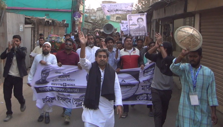 গণসংযোগে প্রার্থীর সাথে আরও উপস্থিত ছিলেন গণসংহতি আন্দোলন নারায়ণগঞ্জ জেলার নির্বাচন পরিচালনা কমিটির সদস্য সচিব আলমগীর হোসেন আলম, ছাত্র ফেডারেশনের সাবেক জেলা সভাপতি ফারহানা মানিক মুনা, গার্মেন্ট শ্রমিক সংহতির জেলা আহ্বায়ক আব্দুল আল মামুন, প্রতিবেশ আন্দোলনের জেলা আহ্বায়ক রাইসুল রাব্বি, যুব ফেডারেশনের কেন্দ্রীয় নেতা আবুল হোসেন মারুফ এবং ছাত্র ফেডারেশনের সৃজয় সাহা ও রনি শেখসহ স্থানীয় নেতারা।