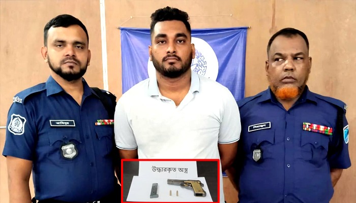 মধ্যরাতে আড়াইহাজারে যুবক আটক, পিস্তল-গুলি উদ্ধার